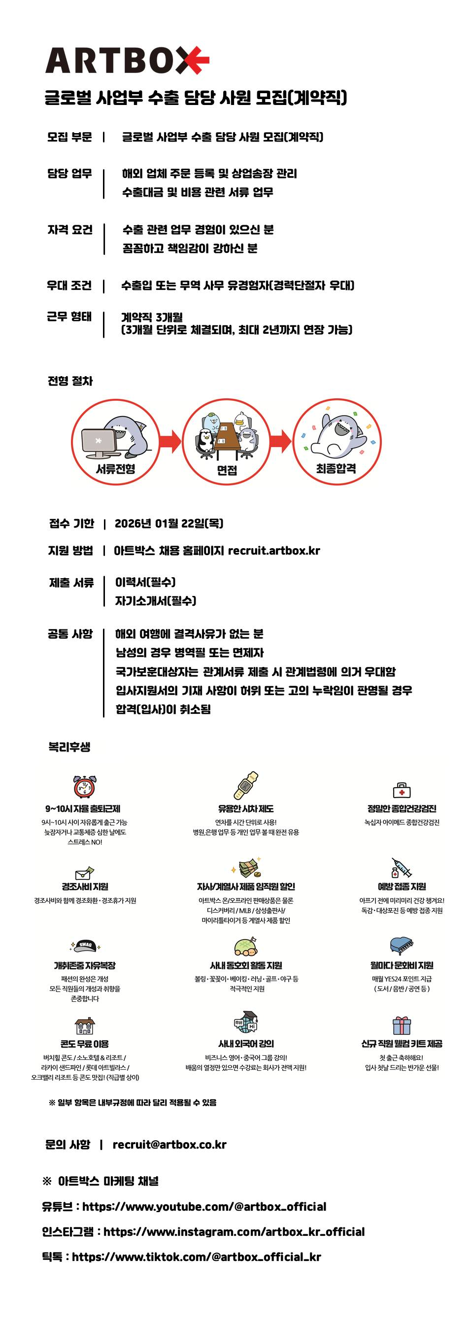 (주)아트박스 글로벌사업부 수출 담당 사원 모집(계약직)