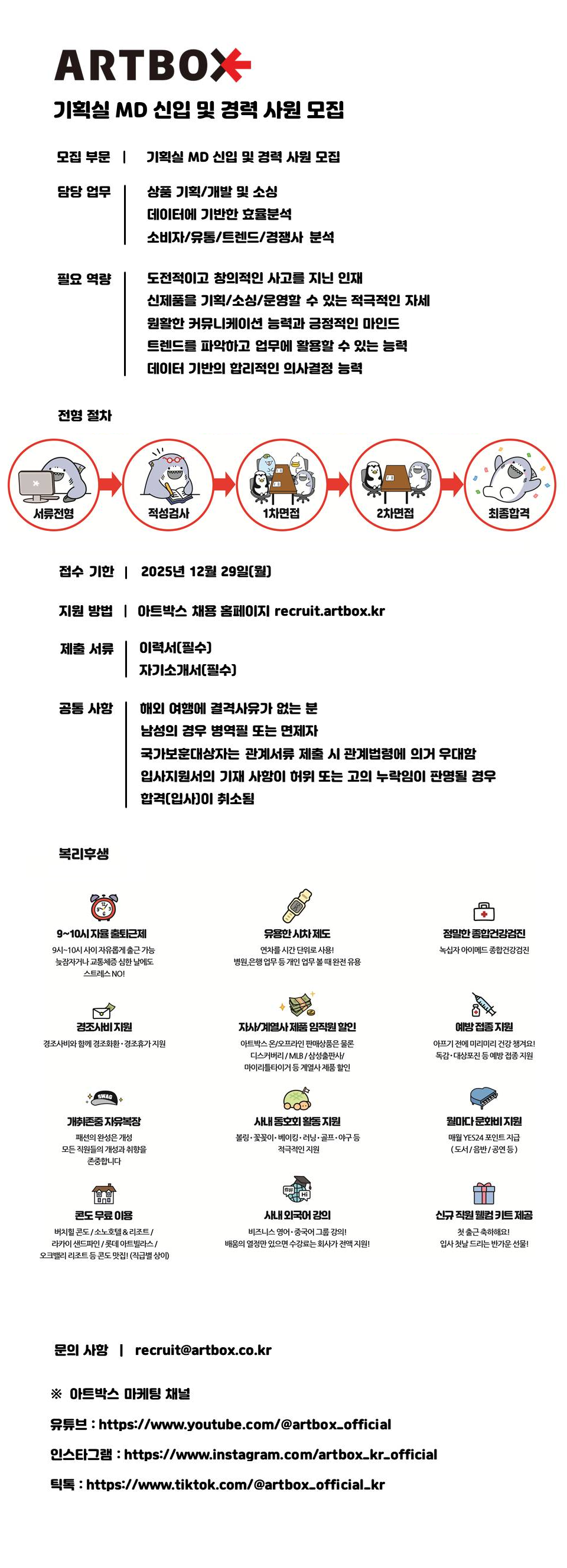 (주)아트박스 기획실 MD 신입 및 경력사원 모집